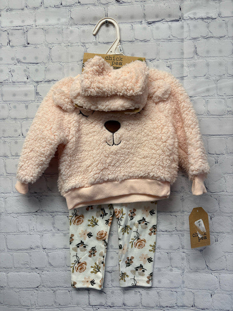 Size 3-6 months Girl's Pink FUR Chick Pea Pantset