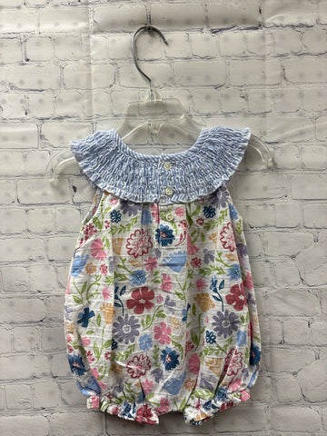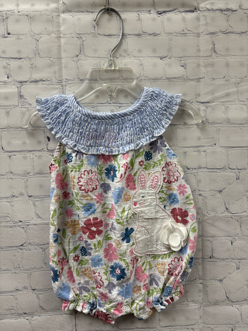 Size 6-9 Months Girl's Blue Floral Mudpie Onesie