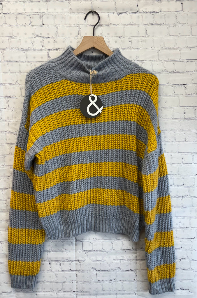 Size Medium Ladies Blue Stripe Sweater