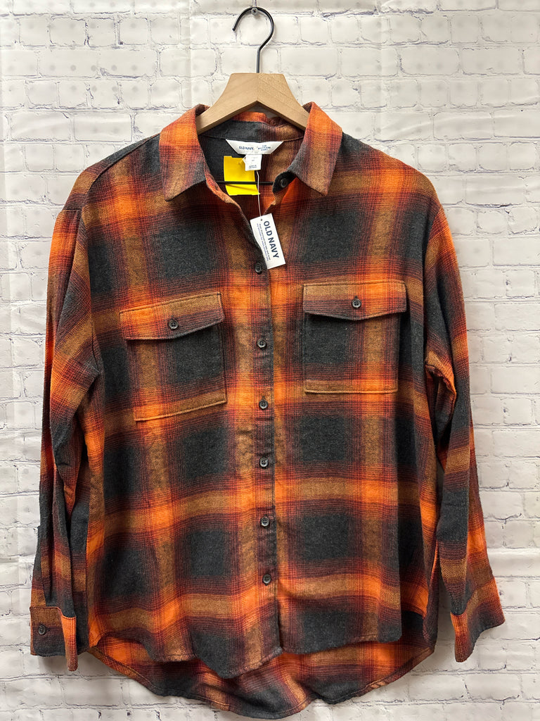 Size Medium Ladies Orange Plaid Old Navy Blouse